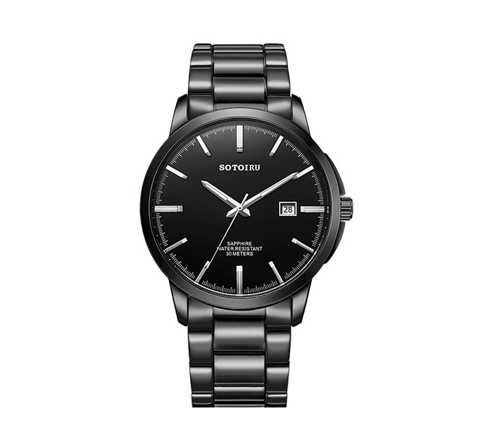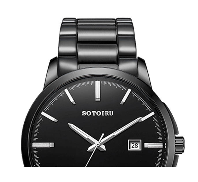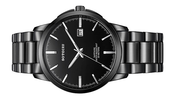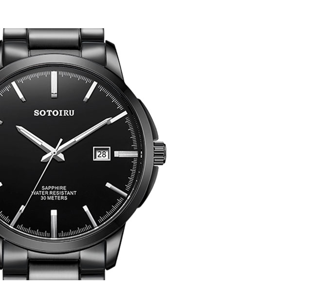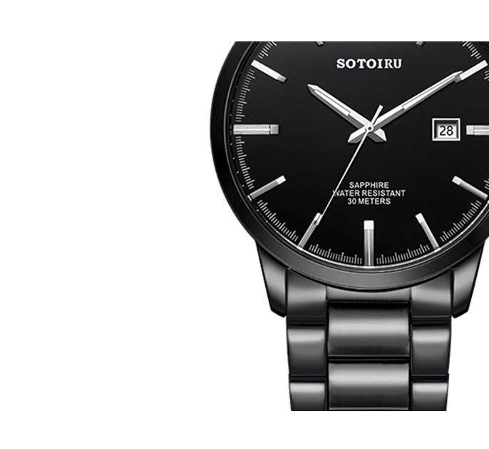 不锈钢表带全电镀黑色,和表壳、表盘融为一体,独树一格的设计,绝对会成为人群中的吸睛点。