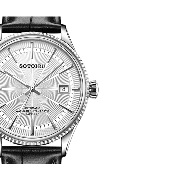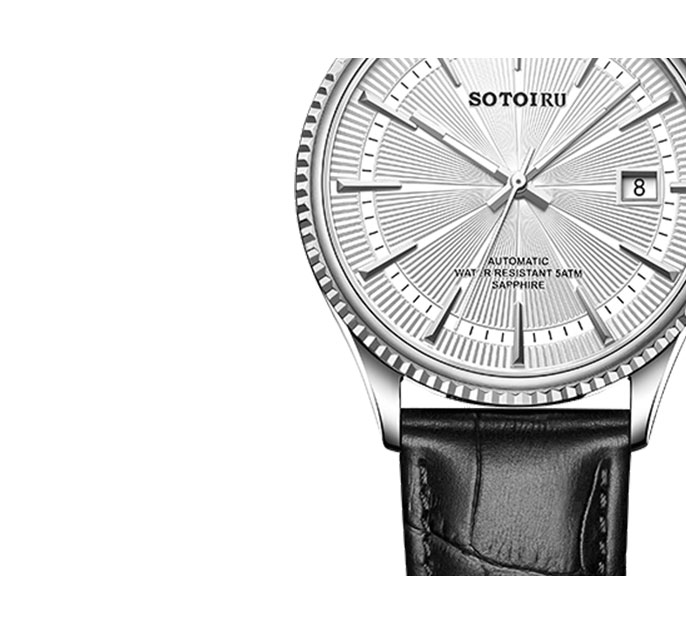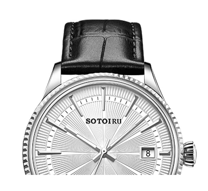 独树一帜的放射纹腕表表盘,令腕表更易识别,读时更易。3点日历视窗,清晰读取当前日历。