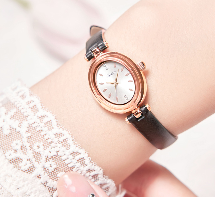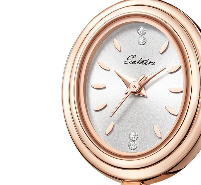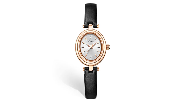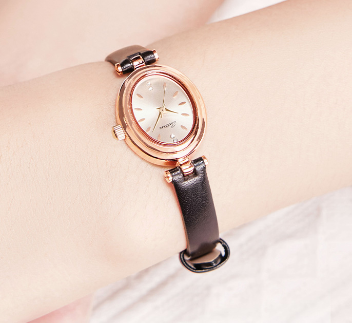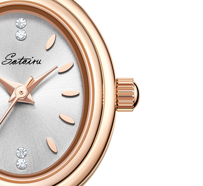 表壳材质:锌合金表壳,真空电镀玫瑰金色,钢底盖