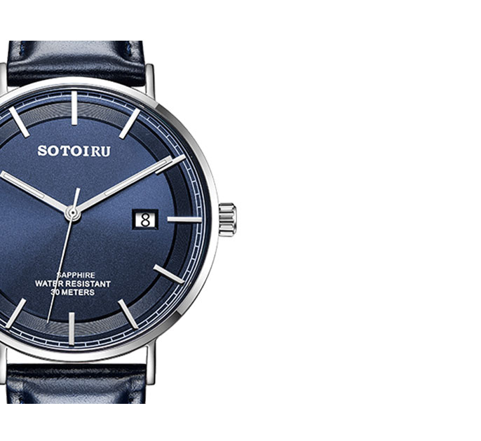 清晰透亮的蓝宝石玻璃表镜,将表盘的细节完成呈现,莫氏9级硬度,仅次于钻石,能在日常生活中,保护手表不被划伤。